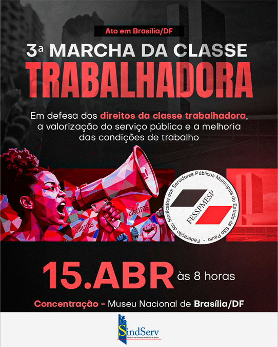 BRASÍLIA – No próximo dia 15 de abril, a capital federal será palco da 3ª Marcha da Classe Trabalhadora. O.
