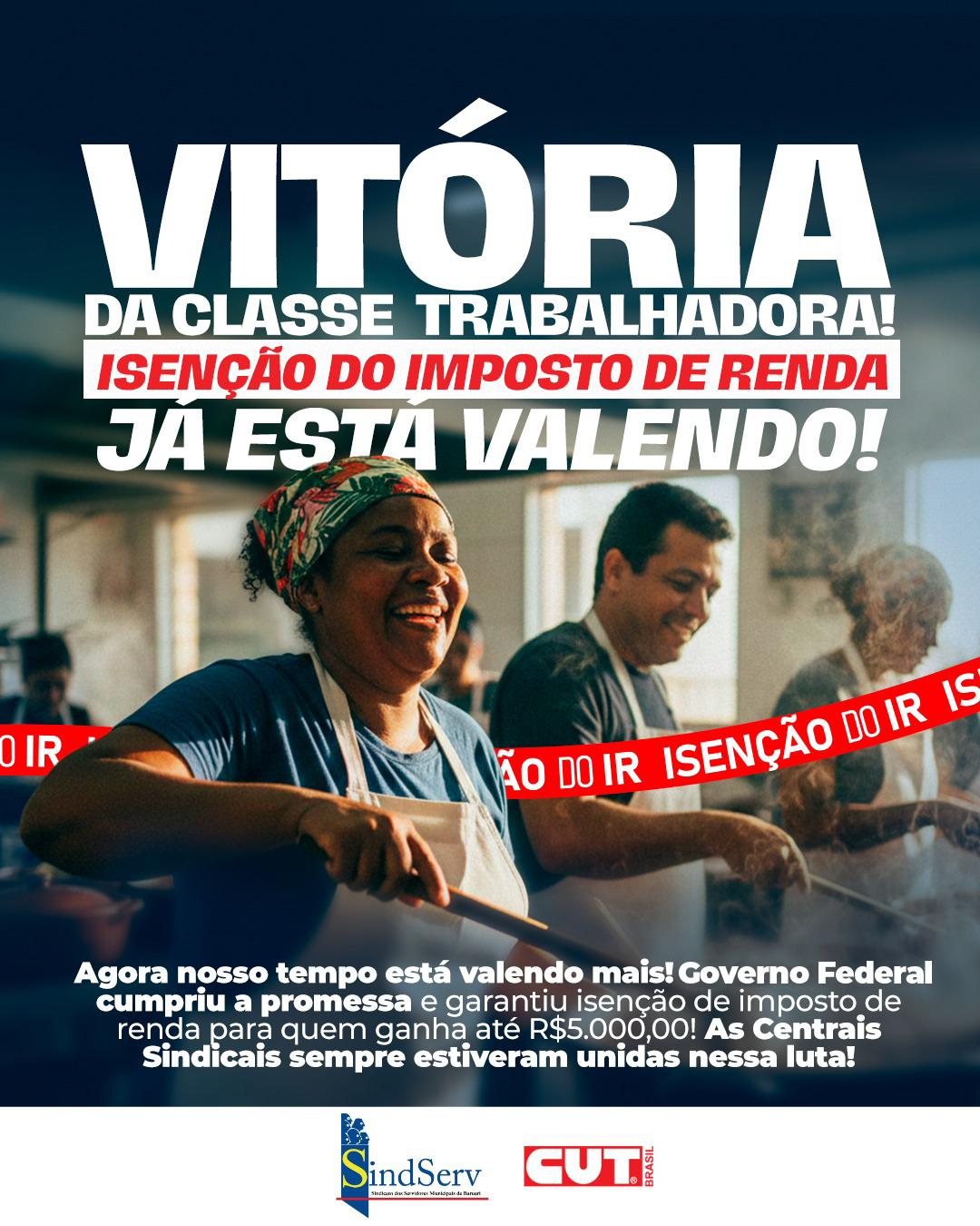 Já está em vigor a nova faixa de isenção do Imposto de Renda para quem ganha até R$ 5.000,00, além de uma redução gradual e significativa nos descontos para os trabalhadores que recebem até R$ 7.350,00.